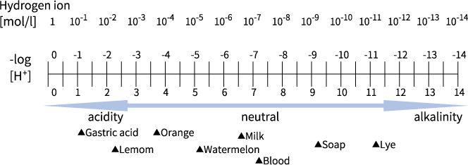 pH는 수소 이온 농도 지수를 나타내며, 그 액체에 수소 이온 "H+"가 어느 정도 존재하고 있는지를 나타내기 위한 단위입니다.